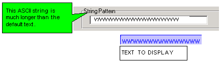 String Pattern defines the size of the text field. The default string 'Text To Display' will provide a field long enough to contain most strings. |