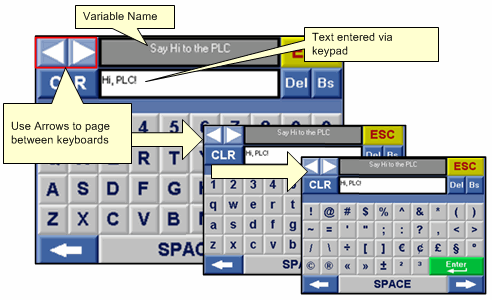 When the user touches the screen, the virtual keypad opens. Use the top arrows to page between keypads to enter capital letters, lower-case, and symbols.