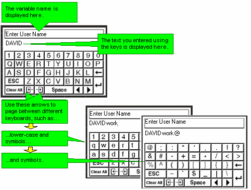 When you select Keypad Entry, the user can enter upper and lower case characters as well as symbols.