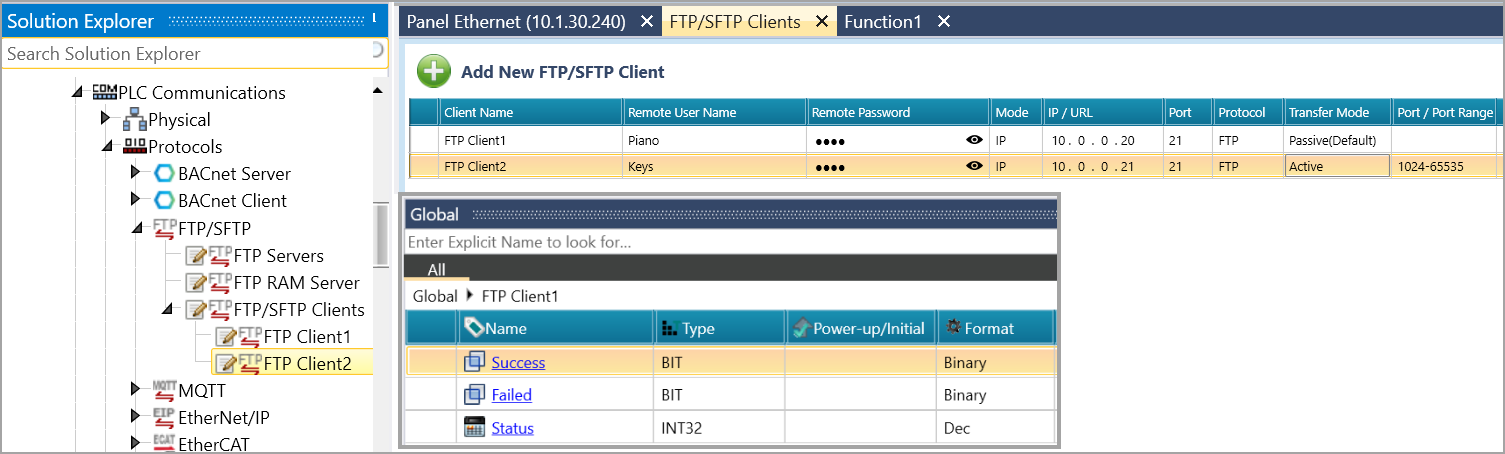 On the Solution Explorer tree, open PLC Communications> Protocols> FTP/SFTP, and click Add New FTP/SFTP Client.