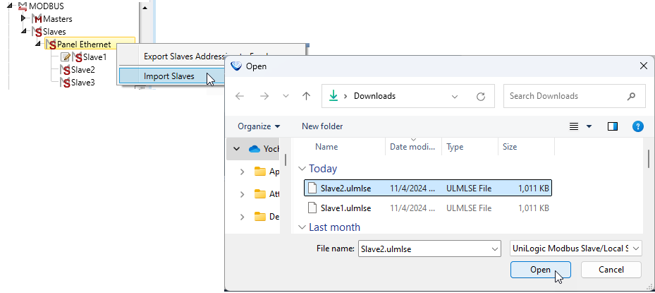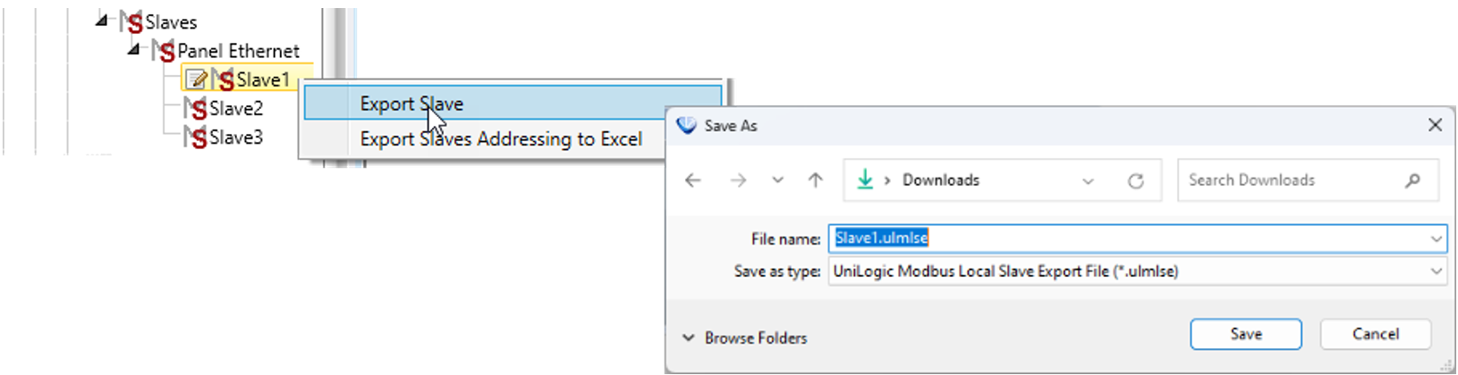 A single slave via a proprietary Unitronics file, right-click the Slave's name and select Export Slave.