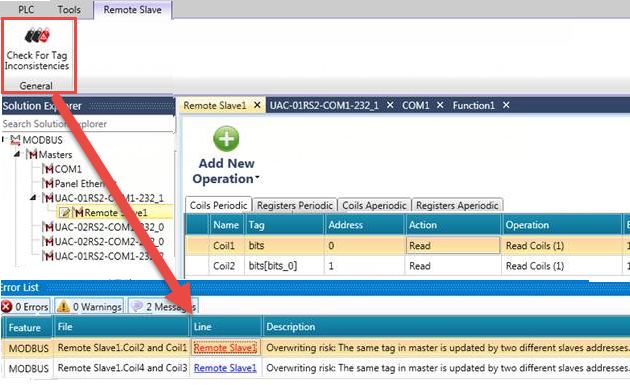 You can select the ribbon tab Remote Slave while you are editing, and click it to check for address overlap. This can help you avoid unintentionally overwriting data.