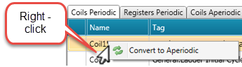 The bit tags were automatically categorized into Aperiodic Coils, and the registers to Aperiodic registers.