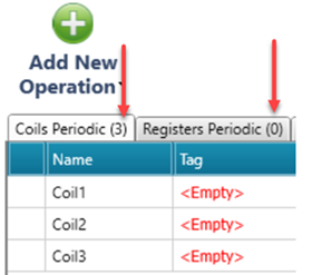 The MODBUS operations you create are arranged in a table. You can create both Period and Aperiodic operations.