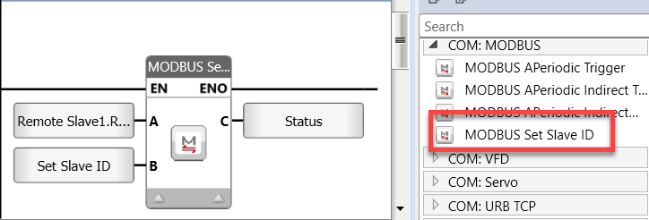 Note that you can change the Slave ID at runtime via the MODBUS Set Slave ID ladder function.