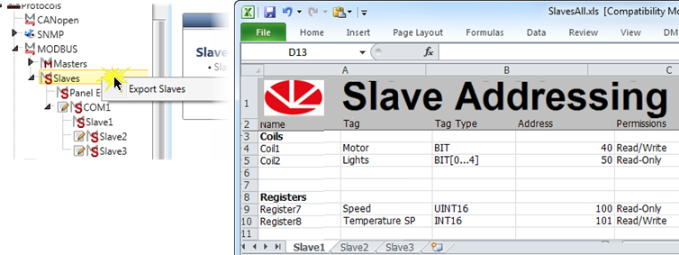 You can also add slaves by right-clicking a MODBUS port in the Explorer tree