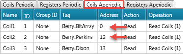 In the next image, note that the operation Coil1 address starts at zero, and Coil2 at 12. This allots sufficient space for for the bit array, 0-11.