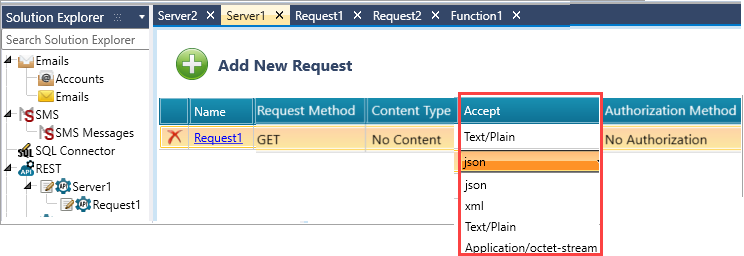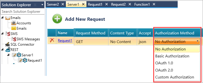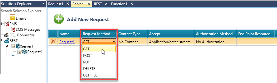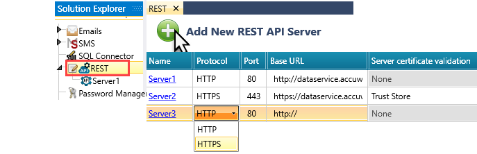 Select REST on the Solution Explorer, and then click Add New REST API Server.
