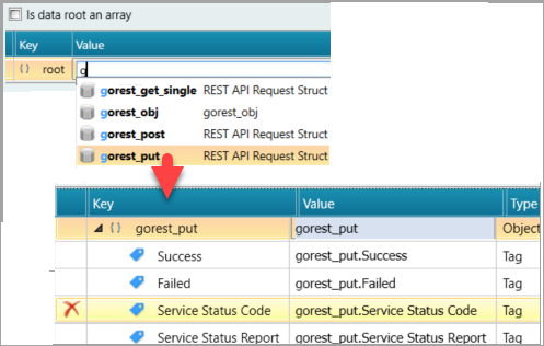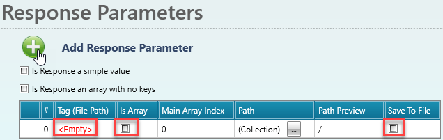 Note that you can also select a response array with no keys; in this case you link tags containing the values you require.