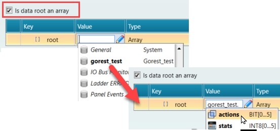 Click in the Value field and make your selections; when you select a struct, UniLogic adds all the struct members. Note that you can delete individual members if desired.
