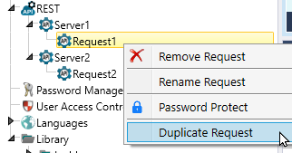 Note that you can right-click a REST API request to remove, rename, password protect, or duplicate it.