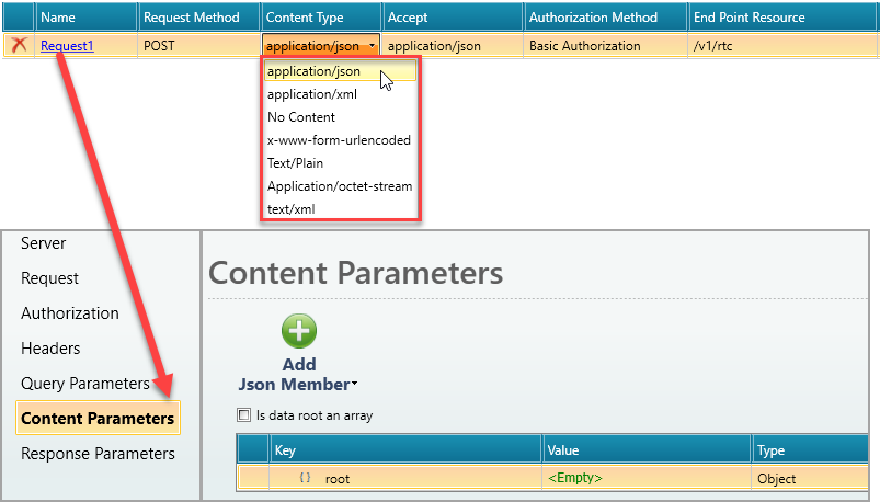 Note that Content Type is only activated if you select an applicable method, such as POST.