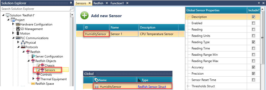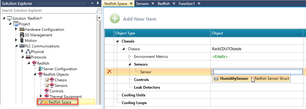 In the Solution Explorer, click PLC Communications>Protocols>Redfish, and click to enable Redfish.