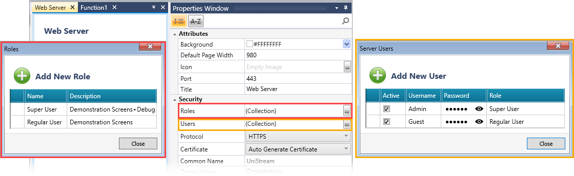 When designing web pages, assign security permissions to individual pages according to your requirements, controlling which Roles can access specific pages.