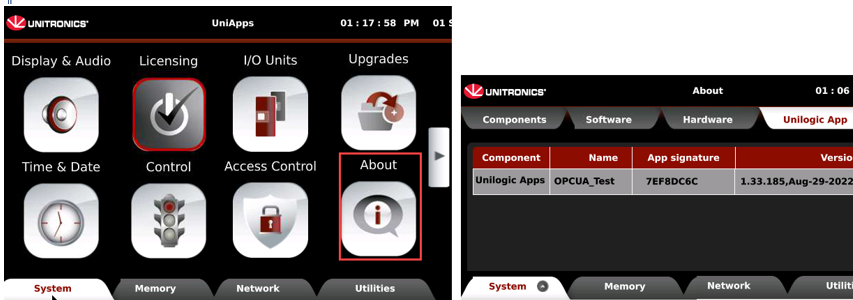 Review the current system: components, software, hardware, UniLogic app, including signaturescomponents, software, hardware, UniLogic app, including signatures and system logs,ogs, and activate Verbosity for Alarms, BACnet, Bufferto file, Cloud, Data Sampler, Data Tables, DNS and PING, Emails, EtherCAT, OCPP, FTP, HMI, MQTT, MODBUS, REST API, SQL, OPC UA, and more.