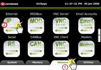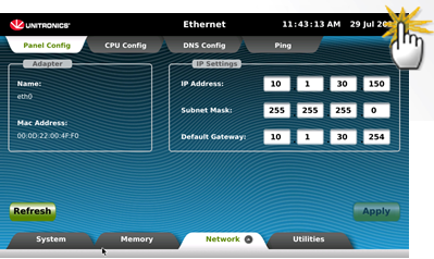 To enter, touch and maintain contact for several seconds with the upper right corner of the HMI Panel touchscreen until the UniApps sidebar menu appears. |