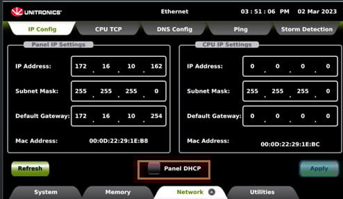 Implement Network> IP Config> Panel DHCPNetwork> IP Config> Panel DHCP.