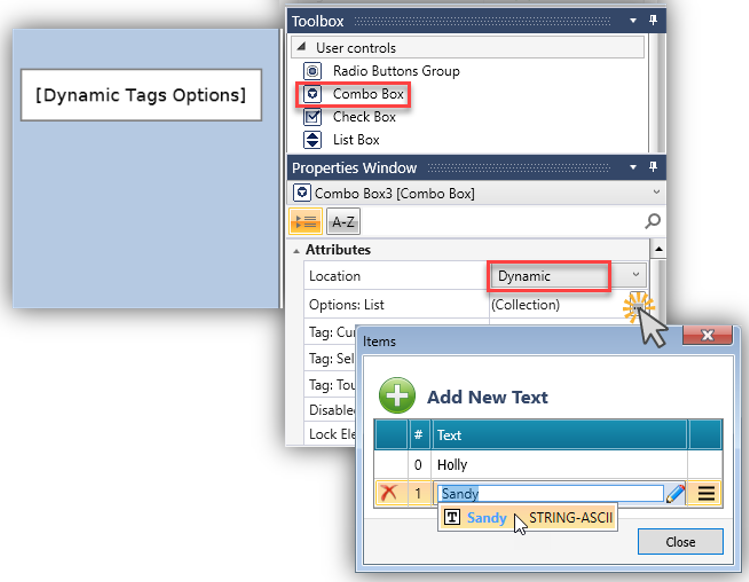 This defines where and how the list of options is sourced. It determines whether the combo box options are static (defined at configuration time) or dynamic (pulled from PLC memory or tags at runtime).