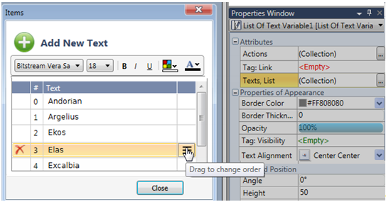 Assign text strings to index numbers by clicking Collection. Within the Collection, you: