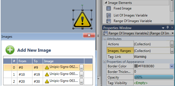 When the value of the linked data tag falls within a set range, the element displays the relevant image.