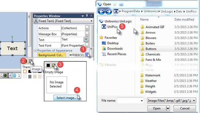 In addition to tools that enable you to customize the appearance of an HMI Element, some elements offer two additional features in the Properties Window: