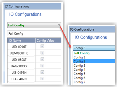 After the project is downloaded into a controller, the end-user uses UniApps> System I/O Configurations to select the Config that matches the controller's configuration.