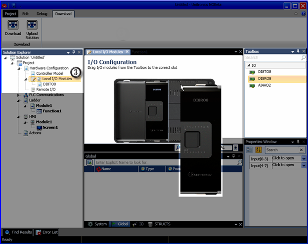 Click Local I/O modules, and then drag modules from the Toolbox to the back of the panel.