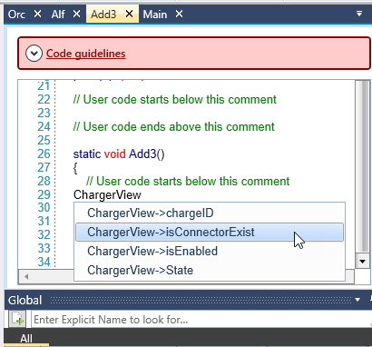 Begin typing the global name.