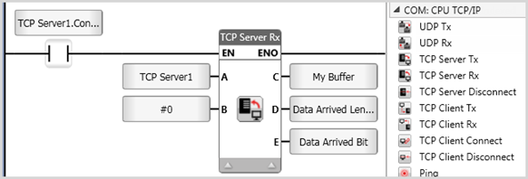 Select a TCP Server that has been defined in PLC Communication > Physical>CPU Ethernet> TCP Servers |