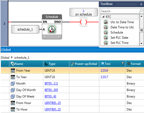 Note that you can use the HMI widget Schedule to enter time values into the struct.