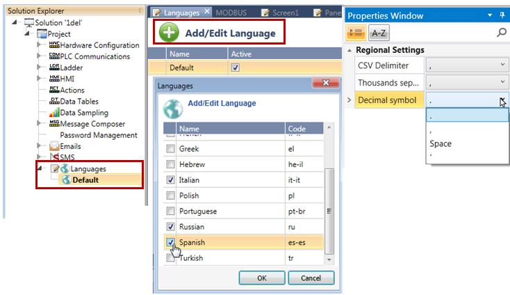 Select the desired languages from the list. The languages you select are displayed on the Solution Explorer.