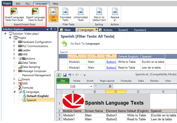 Open the file and edit, then select Import Language Texts to Excel from the program ribbon and follow the on-screen directions.