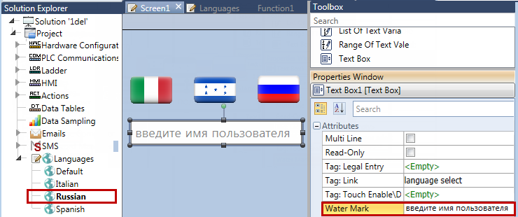 If, for example, you change the default language to Russian, when the user enters data via the HMI screen, the Cyrillic virtual keyboard will open.
