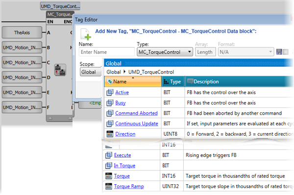 This Function Block enables you to set Torque and apply it according to the physical values you define in the Axis Configuration, regardless of the motor specification.