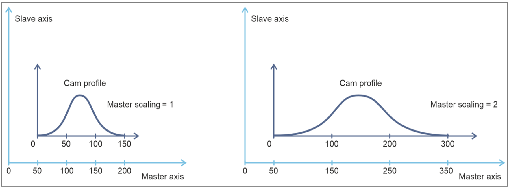 Master Scaling / Slave Scaling: Resizes the CAM table by multiplying all master and slave positions by the specified scaling coefficients.