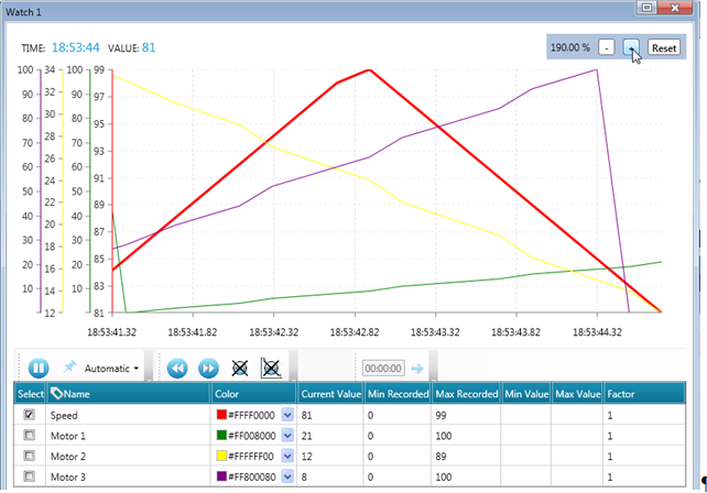Scope Trace enables you to select tags, and view the running values