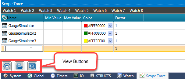 To use Scope Trace, click it in the lower view window, and add the tags you wish to view.