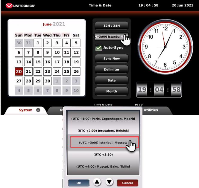 Enter UniApps, either by touching the HMI Panel or via VNC. Enter System > Time & Date.