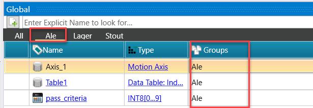 Tags that you create and link to Data Types. The Global scope property means that you can use Global tags throughout your program, in both your HMI and Ladder applications. Note that you can also organize Global tags in Groups.organize Global tags in Groups.