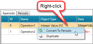 You can convert Aperiodic operations to Periodic, and vice versa. Note that you can also duplicate the operations.