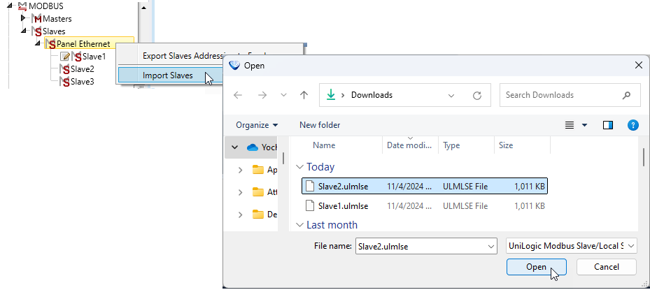A single slave via a proprietary Unitronics file, right-click the Slave's name and select Export Slave.