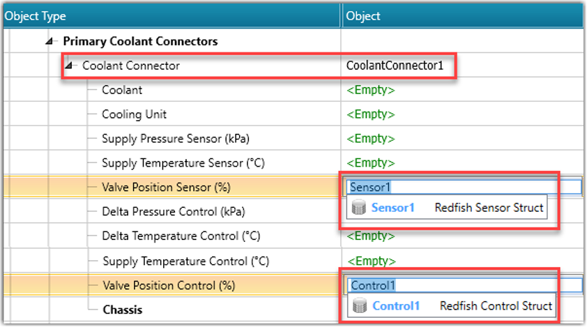 Redfish Coolant Connector Struct values