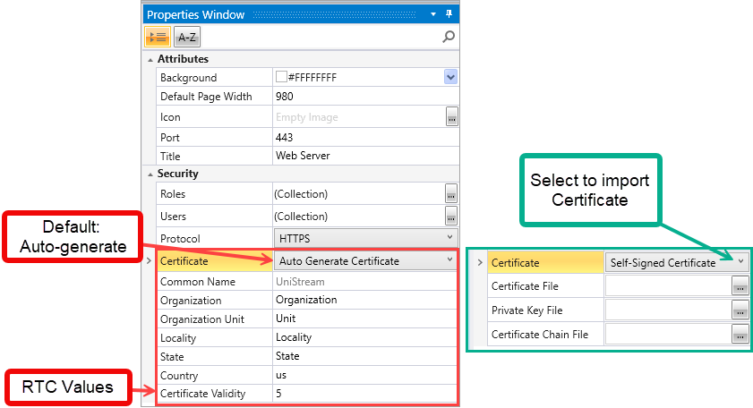 However, you can configure additional Web Server properties at any time by clicking Web Server from the Solution Explorer to open the Properties Window.