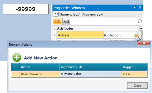 Actions enable a single Touch Element to trigger multiple events. Multiple bits can be linked to one element, triggering Load screen, set, reset, and toggle bits, and more.