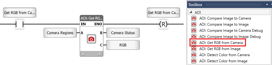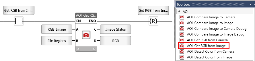UniStream's AOI functionality supports color recognition. The AOI Get RGB Ladder Function provides tools for real-time and static image processing.