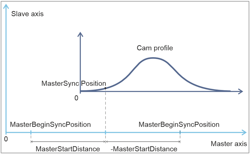 The position of the master in the CAM profile where the slave is in-sync with the master. (if the ‘MasterSyncPosition’ does not exist, at the first point of the CAM profile the master and slave are synchronized.) |