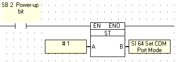 The value of SI 64, Set COM Port Mode, determines if the port will function according to RS232 or RS485. When SI 64 contains 0, the port is set to RS232, when SI 64 contains 1, the port is set to RS485.
