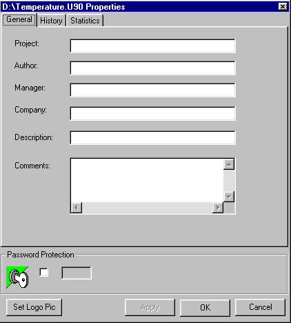 Display project properties by selecting Properties from the Project menu. The project Properties box opens.