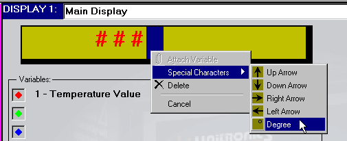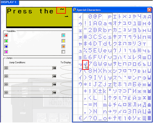 You can display symbols, such as arrows and degree signs, on the controller's LCD. The range of characters depends on whether your controller supports an extended character set, which is a feature of Multilingual Displays.