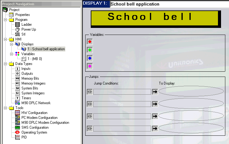 The Ladder Editor is a program editor. The Display and Variable Editors are HMI editors. Each editor is operated through a different window. You switch between editors via the Standard Toolbar buttons or in the Project Navigator.